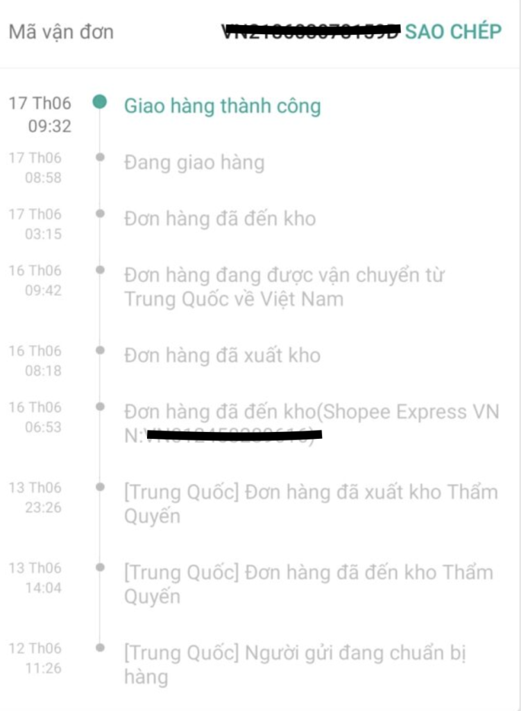 Ảnh một đơn hàng ship quốc tế với thời gian chỉ 5 ngày (ảnh internet)